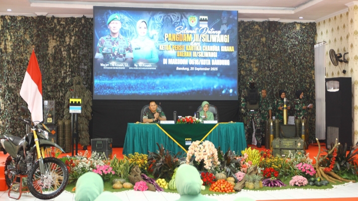 Bandung.swaradesaku.com. Pangdam III/Siliwangi, Mayjen TNI Kosasih, S.E., didampingi oleh Ketua Persit Kartika Chandra Kirana Daerah III/Slw, Ny. Riri Kosasih, melaksanakan kunjungan kerja ke Kodim 0618/Kota Bandung Jl. Bangka No. 2, Kota Bandung. Sabtu, (20/09/2025) dan dihadiri oleh Kasdam III/Slw, Irdam III/Slw, Kapoksahli Pangdam III/Slw, serta para Asisten Kasdam III/Slw, Pa Lo TNI AL, dan TNI AU.
