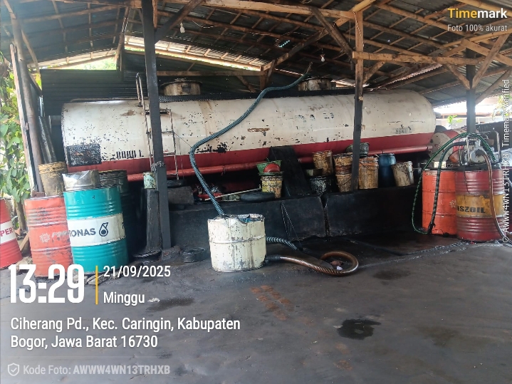 Bogor.swaradesaku.com. Keberadaan tempat penampungan limbah B3 berupa oli bekas di tengah lingkungan padat penduduk di Desa Ciherang Pondok, Kecamatan Caringin, Kabupaten Bogor, menimbulkan kekhawatiran serius masyarakat.