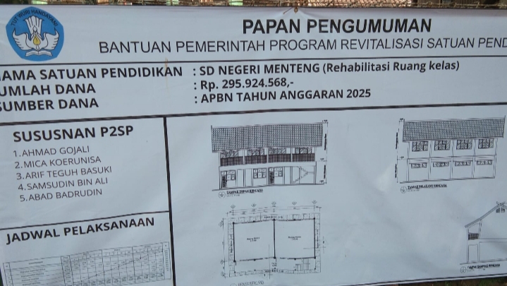 SD Negeri Menteng dengan nilai Pagu Revitalisasi sebesar Rp 1.055.000.000 (satu milyar lima puluh lima juta rupiah).