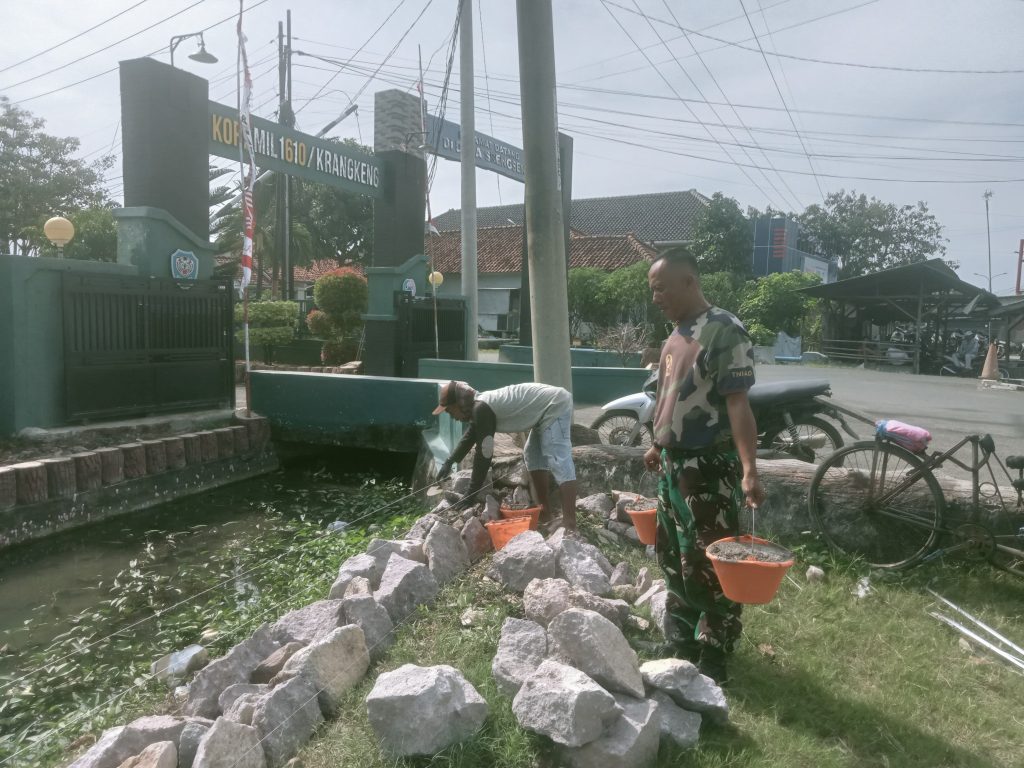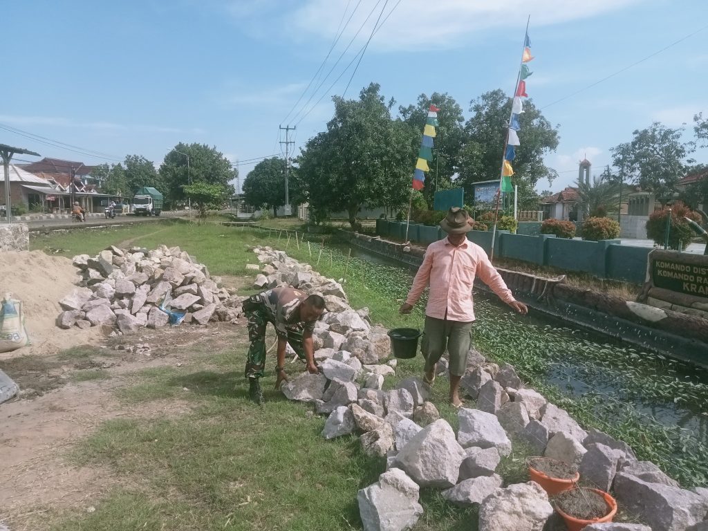 Kapten Inf Sariman Koramil 1610/ Krangkeng Bersama Wakilnya Serka Tarkim, Sertu Yusa Bikin Pondasi Alun Alun, Magnet Baru Bagi Masyarakat Berkumpul Dan Berholaraga