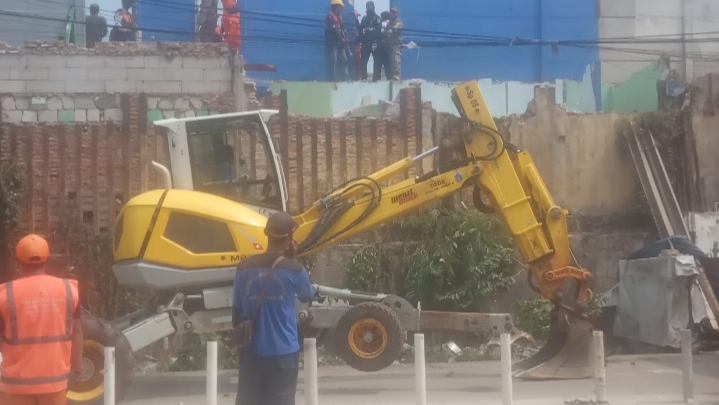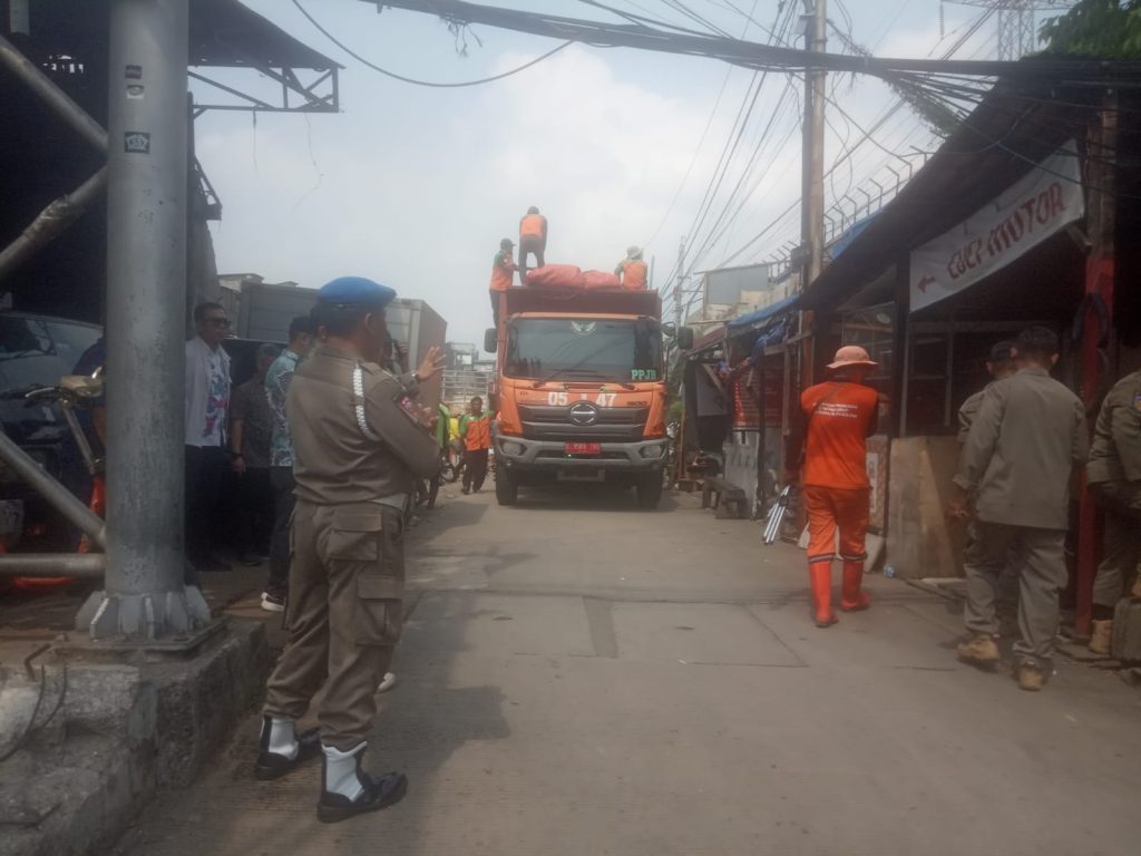 Terlihat satuan Pamong Praja, Kepolisian Sektor Tambora, TNI, Damkar, Dinas Sosial serta puluhan petugas PPSU Jakarta Barat dikerahkan ke lokasi penertiban.