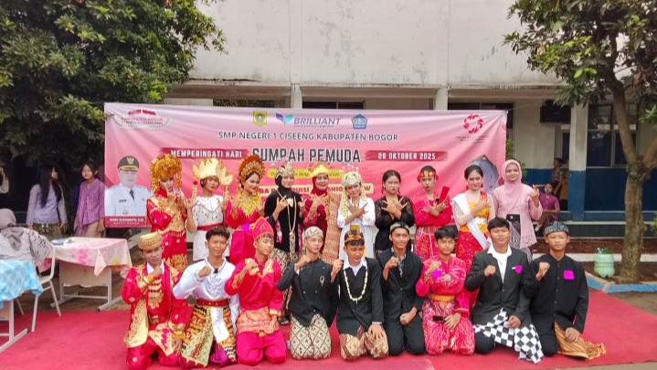 Bogor.swaradesaku.com. makna inti dari persitiwa bersejarah kembali tersaji di tahun ini. Sumpah Pemuda 1928, yang diperingati tiap tanggal 28 Oktober kembali menggema, mengingatkan kembali akan peran pemuda-pemudi penerus peradaban bangsa,Selasa 28/10/2025 di halaman SMPN 1 Ciseeng terlihat berbeda. Biasanya berseragam sekolah yang dikenakan oleh siswa siswi, kini justru dewan guru,pera siswa siswi dan tenaga kependidikan yang kompak memakai pakaian adat nasional dalam peringatan Hari Sumpah Pemuda ke-97