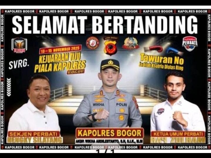 “Saya mengucapkan terimakasih kepada PERBATI yang telah mendukung Kejuaraan Tinju Piala Kapolres Bogor 2025. Kampanye Tawuran No, Tinju Yes melalui event ini memang sangat kami butuhkan dalam menekan aksi tawuran di wilayah Bogor. Jadi, mereka yang hobi tawuran bisa menyalurkannya di atas ring,” kata Kapolres Bogor AKBP Wikha Ardilestanto, S.H, S.I.K, M.Si. yang dihubungi Jumat (7/11/2025).