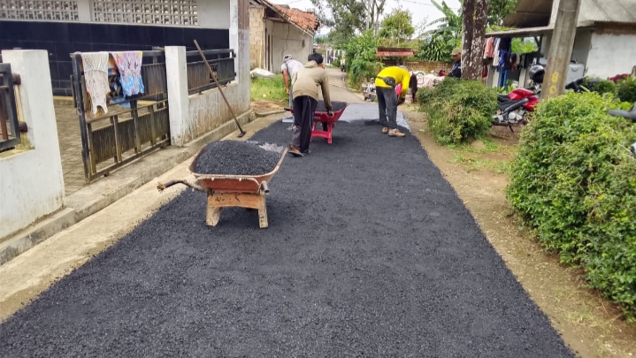 Bogor.swaradesaku.com. Pemerintah Desa (Pemdes ) Cibalung Kecamatan Cijeruk , Kabupaten Bogor, terus menunjukkan komitmennya dalam mendukung Program Pemerintah Daerah yang langsung dari Bupati Bogor Rudi Susmanto, yaitu salah satu program unggulan Desa adalah Hotmik dan Bentonisasi Jalan Desa