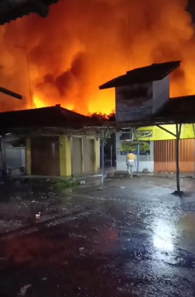 Peristiwa kebakaran terjadi pada Selasa (30/12/2025) sekitar pukul 18.40 WIB dan mengakibatkan puluhan kios dan los pedagang hangus terbakar, bahkan sebagian besar area pasar nyaris rata dengan tanah. Kerugian materi diperkirakan mencapai ratusan juta hingga miliaran rupiah, meski hingga kini masih dalam proses pendataan.
