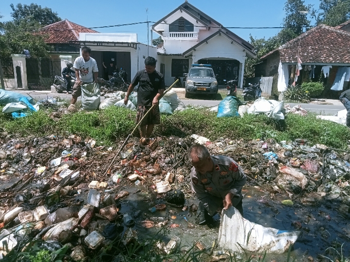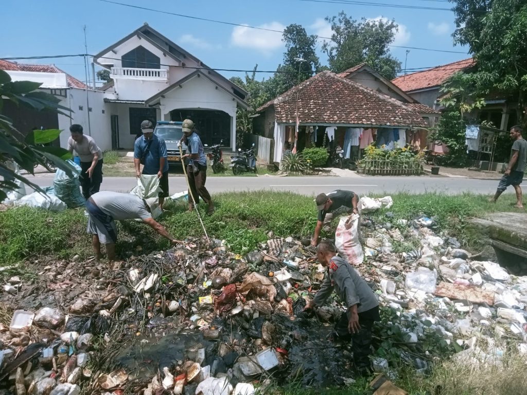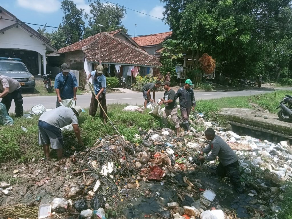 Indramayu.swaradesaku.com. Kapolsek Kedokanbunder IPDA, Eryana. Beserta Pemerintahan Desa Kaplongan Kidul dan BPD, Serta warga bergotong royong membersihkan tumpukan sampah di kali Kaplongan Kecamatan Kedokanbunder Kabupaten Indramayu.
