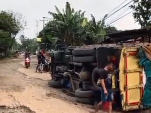 Bogor.swaradesaku.com. Tidak kunjung diperbaiki, jalan di Kampung Balekambang, Kecamatan Jonggol, Kabupaten Bogor, Jawa Barat, rusak parah sepanjang -+ 13 km.jalurnya berlubang hingga sebuah truk terguling ,tak sedikit pengendara menjadi korban terperosok ke lubang jalan Milik Pemerintah Kabupaten Bogor ( Pemkab ).