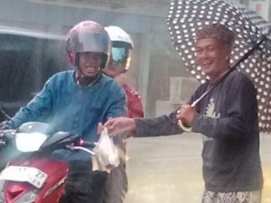 Meskipun sempat diguyur hujan, semangat para wargi KBPA untuk berbagi tidak surut. Mereka tetap berdiri di tepi jalan membagikan ratusan paket takjil kepada masyarakat dan para pengguna jalan yang melintas, khususnya mereka yang masih berada dalam perjalanan menjelang waktu berbuka puasa.
