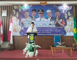 Camat Caringin, Ramdan Firdaus, M.Si., dalam sambutannya menyampaikan bahwa kegiatan Halalbihalal ini menjadi momentum yang masih dalam suasana Idulfitri untuk saling memaafkan lahir dan batin serta mempererat tali silaturahmi antarinstansi.