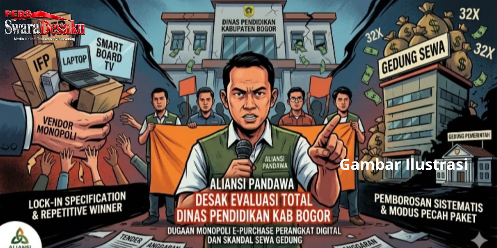 Bogor.swaradesaku.com. Koordinator Aliansi Pandawa yang juga Ketua Badan Peneliti Independen Kekayaan Penyelenggara Negara dan Pengawas Anggaran Republik Indonesia (BPI KPNPA RI) Bogor, Rizwan Riswanto, memberikan pernyataan keras terkait indikasi penyimpangan dalam tata kelola anggaran di Dinas Pendidikan (Disdik) Kabupaten Bogor. Fokus utama sorotan tertuju pada pola pengadaan barang digital dan pemborosan anggaran jasa penyewaan.