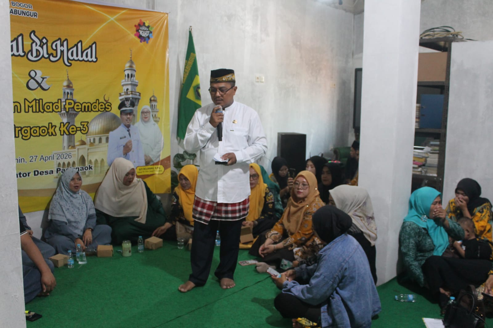 Bogor.swaradesaku.com. Pemerintah Desa Pasirgaok menggelar kegiatan Halal Bihalal yang dirangkaikan dengan syukuran Milad ke-3 masa kepemimpinan Kepala Desa Abdul Rohman, S.E. Acara berlangsung khidmat dan penuh kebersamaan pada Senin (27/4/2026), bertempat di Aula Desa Pasirgaok, Kecamatan Rancabungur, Kabupaten Bogor.