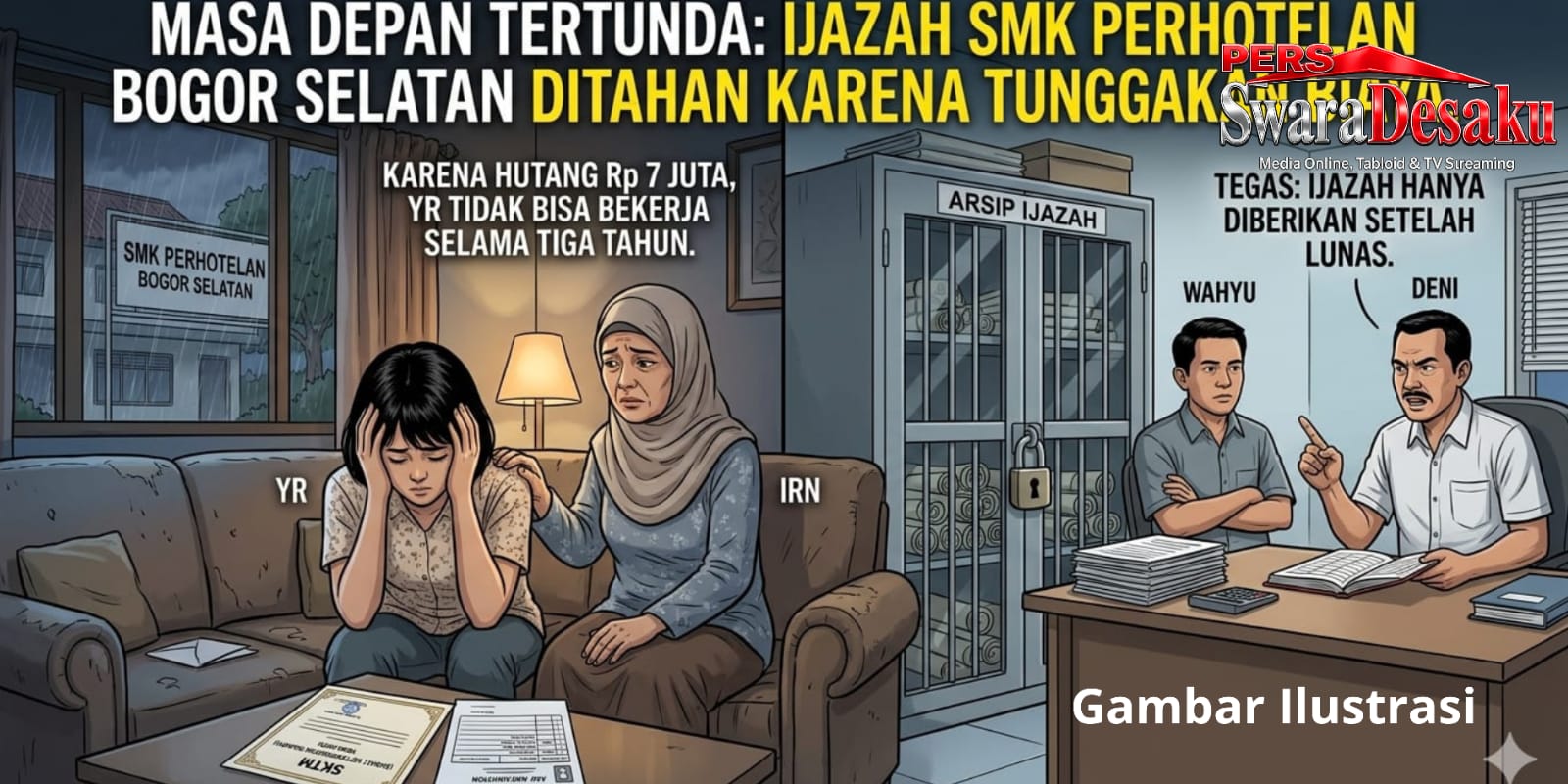 Seperti yang diceritakan IRN seorang wali murid SMK Perhotelan kepada awak media bahwa YR putri nya hingga kini belum menerima ijazahnya sejak dinyatakan lulus pada 2022. Dokumen penting tersebut diduga ditahan pihak sekolah karena tunggakan biaya pendidikan sebesar Rp7 juta. Selasa (28/04/2026).
